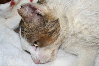這隻大白貓一兩年前就常在這社區神出鬼沒,總是來的快去的也快!每次遇到牠總是在我沒帶籠子出門時,帶了籠子就一定遇不到牠!沒想到昨天這麼幸運,無意間竟讓我抓到牠!不過我的幸運却成了牠的不幸,但為了其它母貓好,只好犧牲牠的.....蛋蛋了~