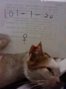 這隻小母貓不見已有些日子了,原準備收拾誘補籠要過年了,醫生也不接案件了.但無心插柳看見了它,就請進了誘補籠,還好醫生很幫忙,熱心的幫它動了手術.這樣比較安心了.