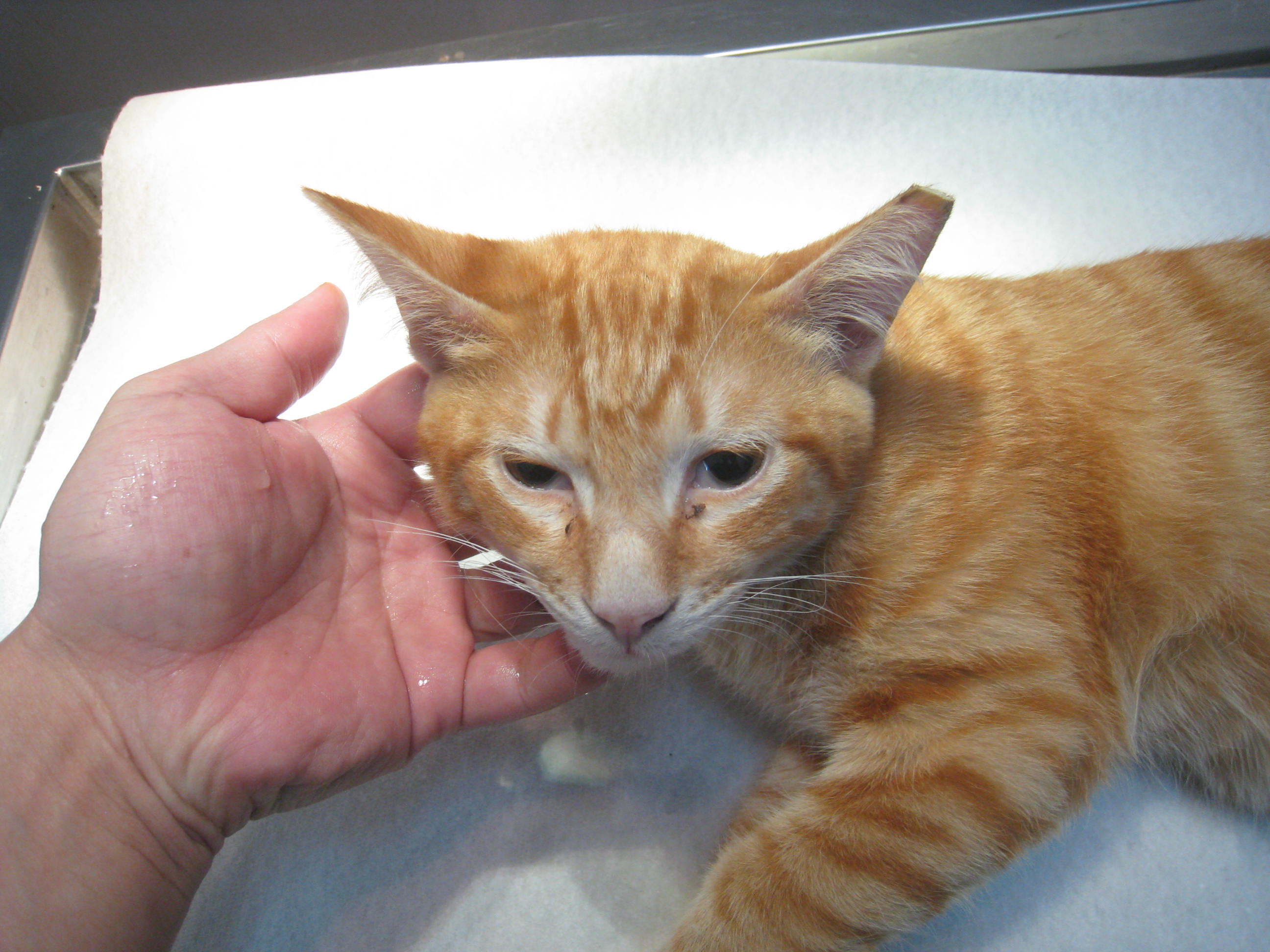 漂亮但是很緊張的黃色虎斑公貓,於昨晚捕獲,趕在醫院下班前送達