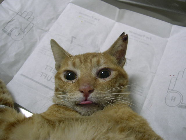 天氣放晴 聽說有大肚子的母貓 於是立刻設籠去抓 結果抓到一隻胖母貓及兩隻公貓