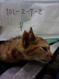 這隻同上一隻一樣是同一胎生的,也是同一天捉到的.本意是要先抓母貓的,但小貓不請自來,所以也蠻慶幸的它們剛剛轉大人,剛好可以結紮