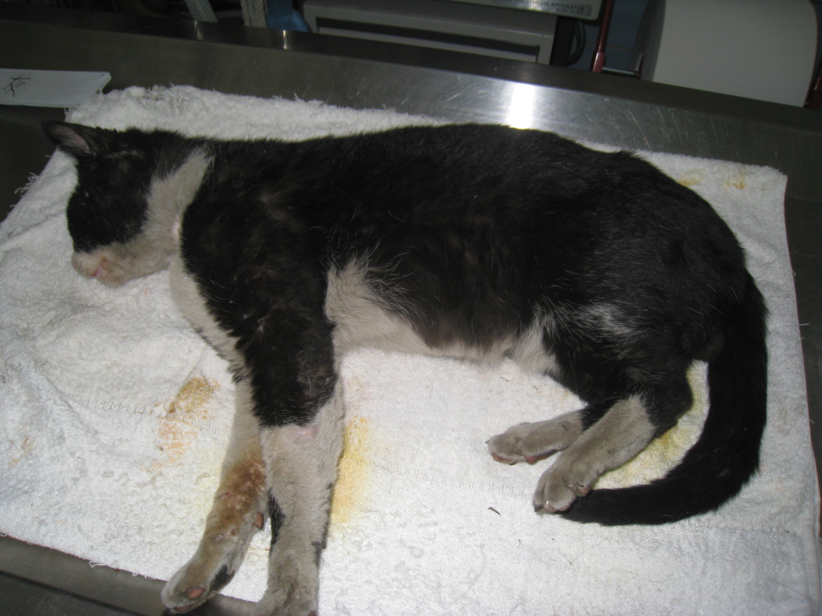 公貓在地下室與另一支公貓(小灰)打架,一起捕獲。