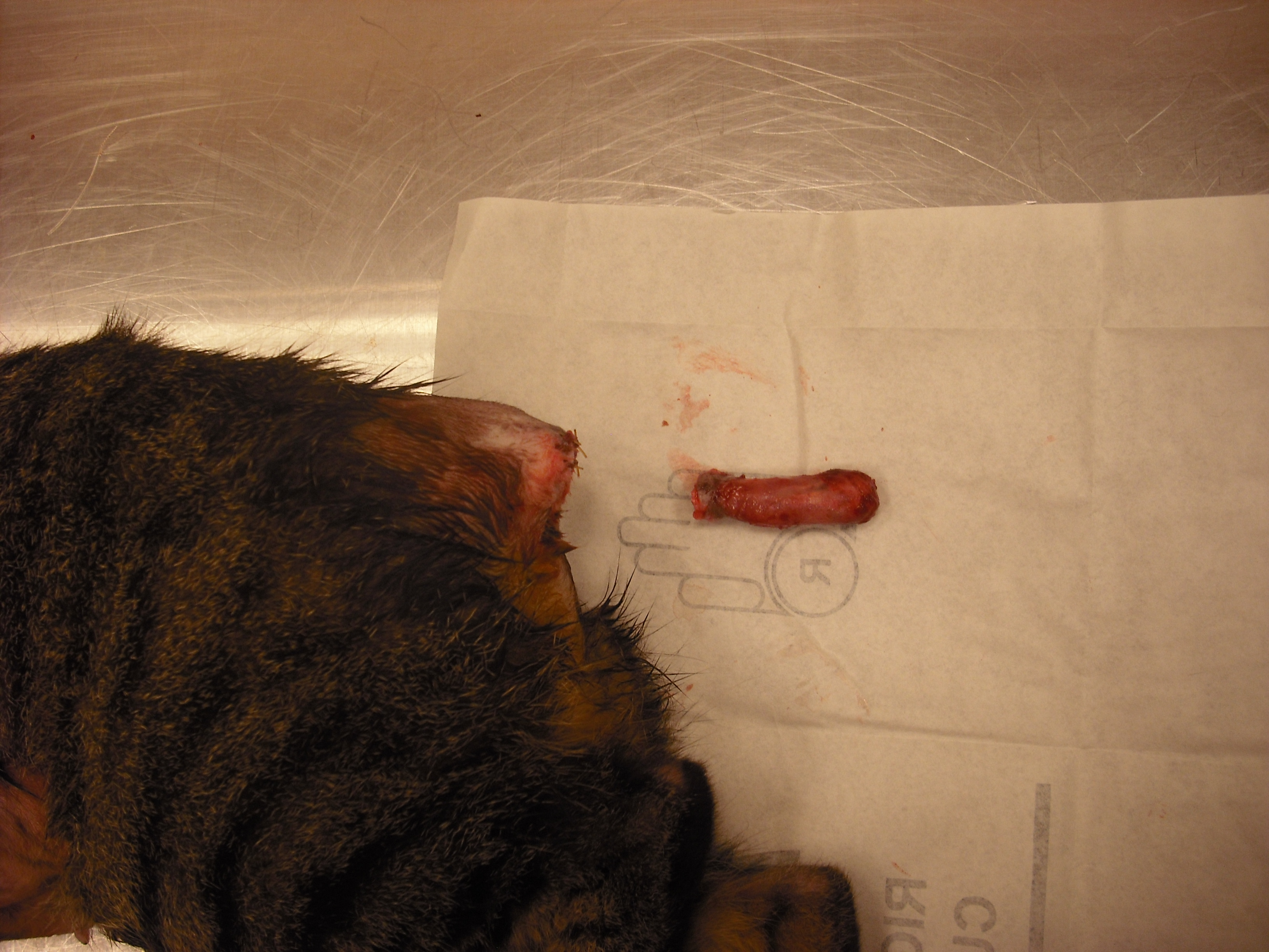 這隻貓咪尾巴已爛掉,所以有另外施作截尾手術