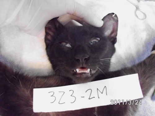 想要先抓這邊剛長大的小母貓, 但母貓很有緊戒心, 公貓很貪吃一直過來. 把母貓都擋在後面, 後來母貓都沒看到, 抓到這幾隻都是公的, 這隻是年輕的黑公貓 <323-2M>