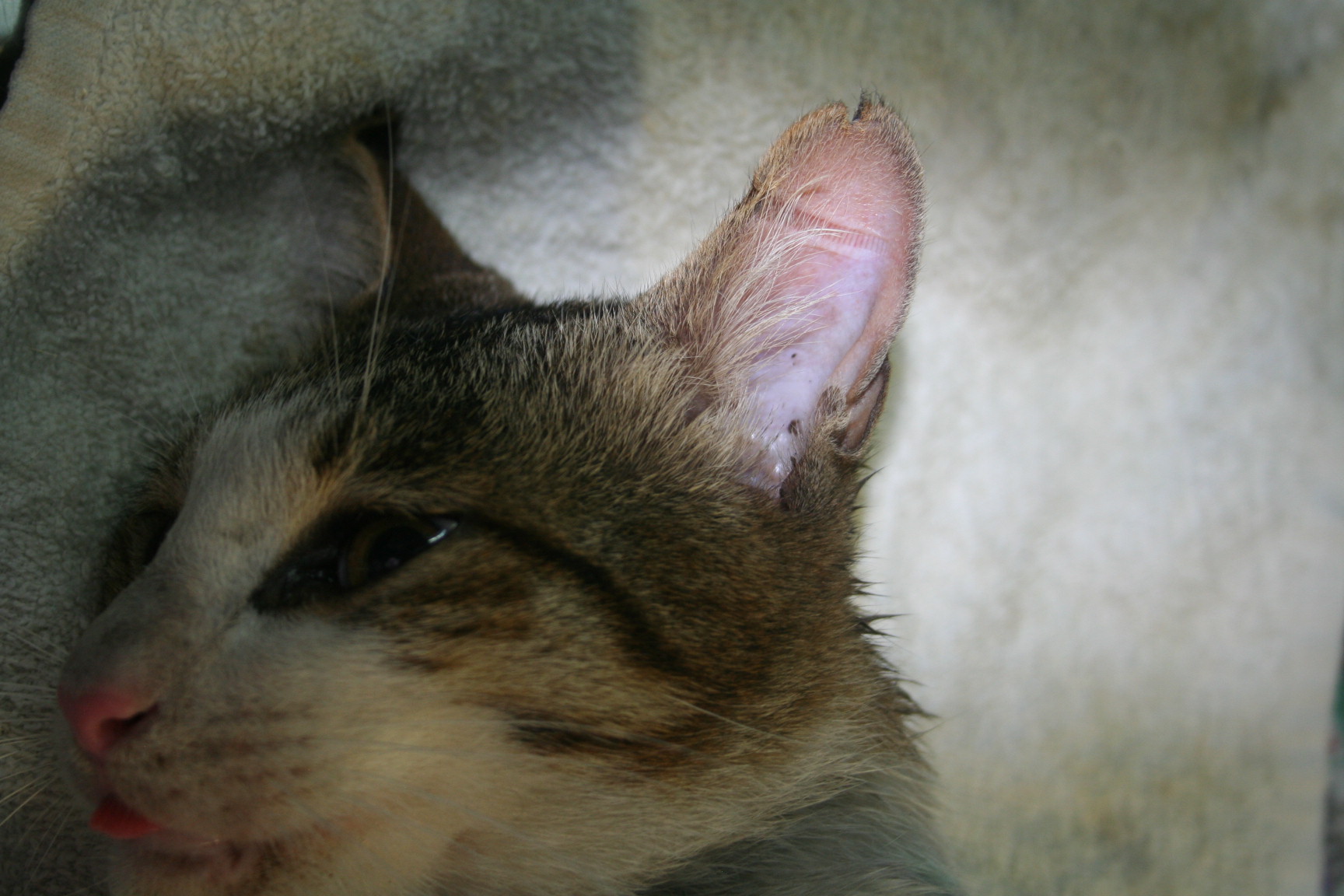 為了能在外觀上清楚辨識-->以免再被抓去節育.所以做剪耳記號...男左女右~