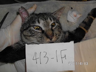 TNR的貓結紮時在耳朵會剪記號, 以免日後又被重覆做手術> <413-1F>