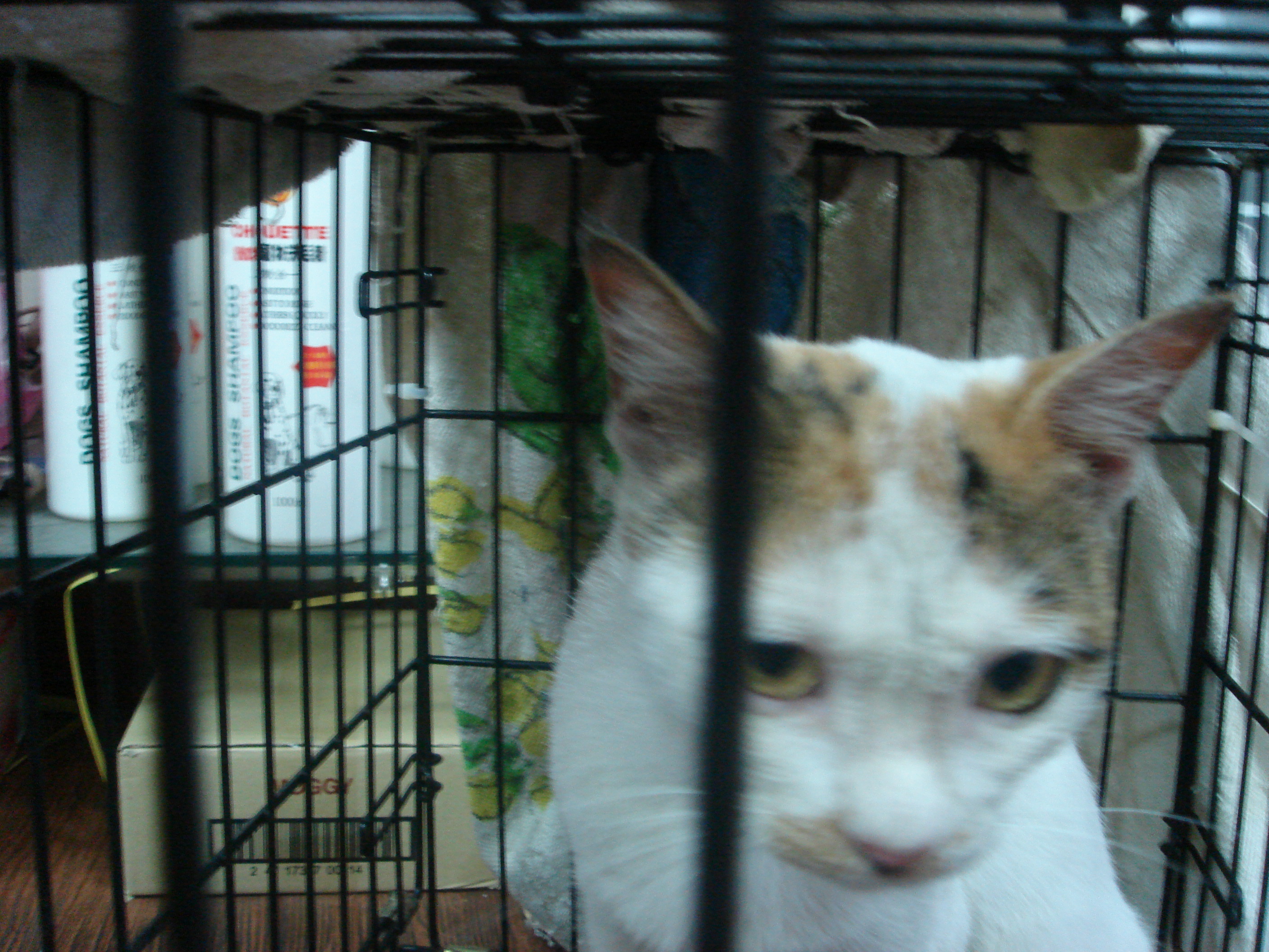 他是一隻瘦到看不出有懷孕的母貓..而且常被一隻有店家放養的貓攻擊''很可憐也算很乖巧