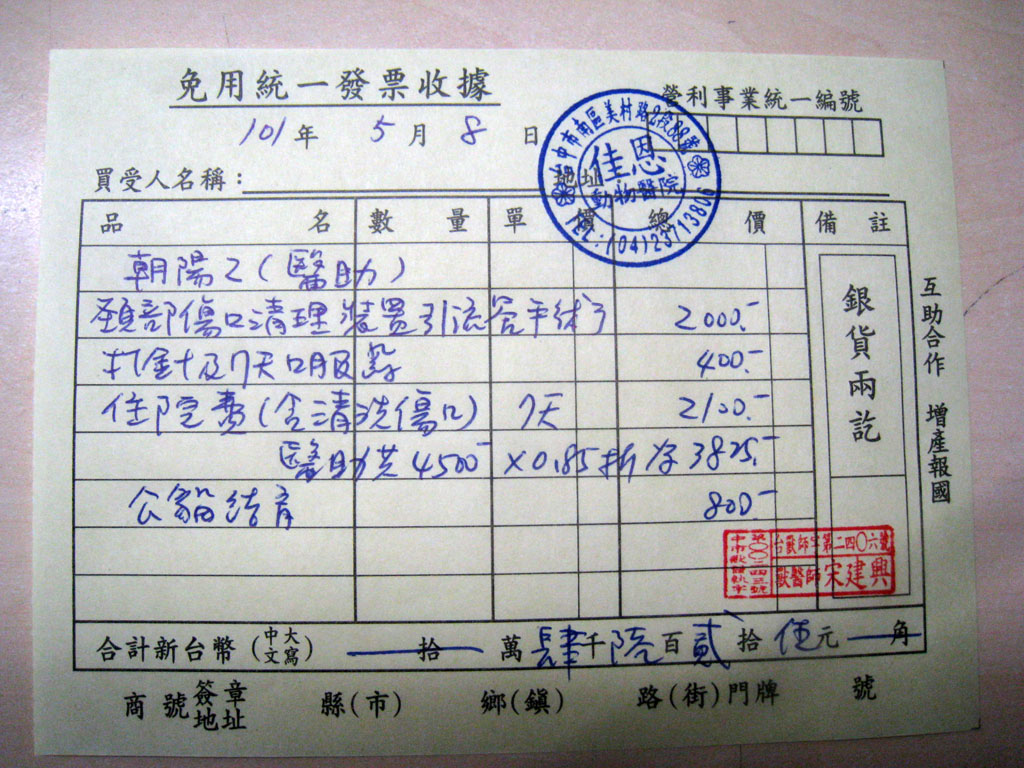 結紮醫院: 佳恩動物醫院 結紮費用: 800