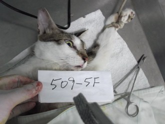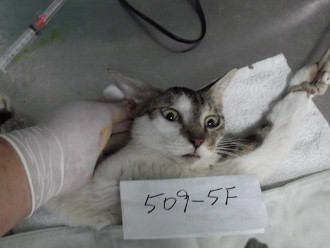 家裡這條巷子好不容易紮完也經過里長的支持跟居民溝通, 現在餵貓不用躲躲藏藏, 但附近巷子最近發現凌晨4點左右有一群貓聚集, 都沒紮, 餵的阿婆好像都亂丟亂餵, 那邊的居民抱怨聲連連, 再不抓去結紮很怕會被居民通報來抓. <509-5F> TNR的貓會在耳朵剪角做記號, 以免日後又被重覆進行手術.