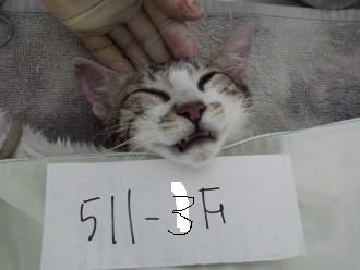 中午定點餵時新看到的貓咪, 誘補結紮, 她看起很年輕 貓媽媽應該也是在這附近, 要抓貓媽媽結紮才行. TNR的貓會在耳朵做剪耳記號, 以免日後被重覆手術 <511-3F>