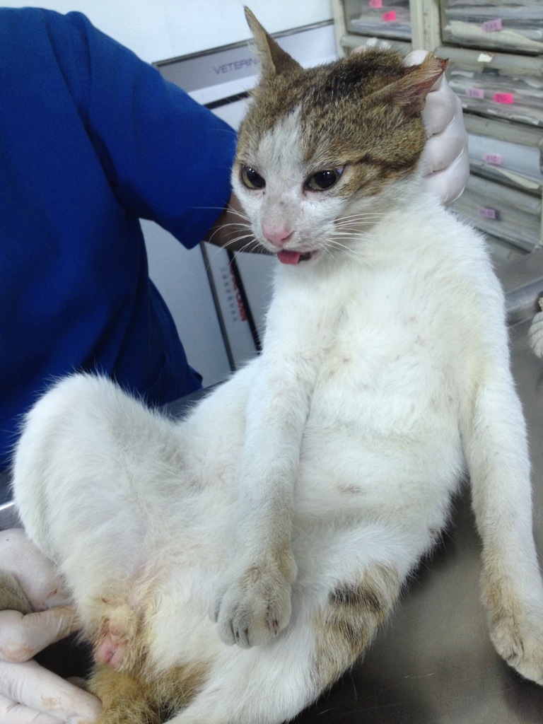 貓口數約5隻,平常會有愛心姐姐固定餵食,近來有三隻母貓陸續生產,只能先抓公貓了,細心的醫師說貓咪牙齒狀況並非很好,還有腫脹的問題,難怪會不停流口水。(2)