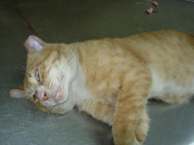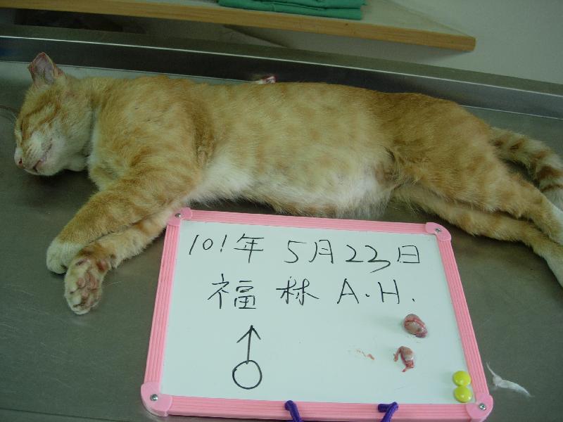 華夏技術學院周邊有許多貓咪,已陸續結紮,已觀察這隻大頭貓多月,牠散步區域很廣,不會每日出現,這次終於抓到,手術醫師表示;這隻公貓有一邊(左邊)睪丸比較小(發育不完整?),總之結紮了也不會再發情打架了,感謝助紮人士。
