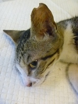 這幾隻年輕的貓咪都是我家附近, 之前沒注意到這群貓, 因為他們出來的時間都凌晨4點多, 趁發情前誘捕結紮..TNR的貓咪會在耳朵上做剪耳記號, 日後才不會被重覆誘捕手術..