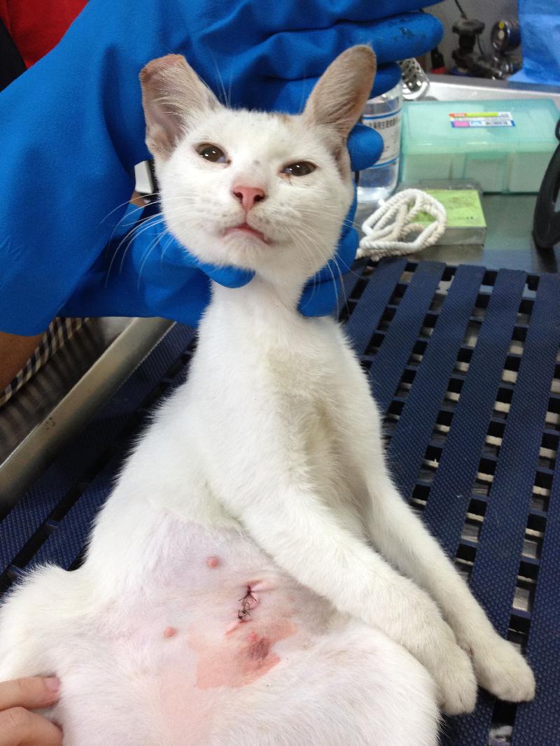 貓口數約5隻,平常會有愛爸固定餵食,怕又生一堆小貓,先從母貓下手控制貓口數量。(1)