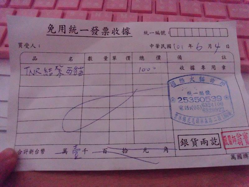 【捐款收據為線上自行列印,請參考http://www.tnrtw.org/news.php?news=421