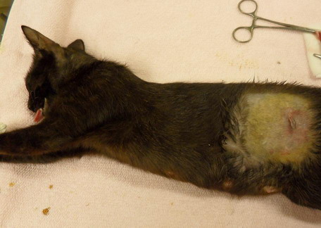 在籠內衝撞導致額頭撞了一些破皮~