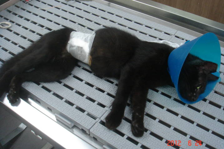 最近市場多好多隻新面孔,平常餵食這隻黑貓都會靠近,只是不給摸,醫生說黑貓生過好幾次,上次生完是二個月前,趁尚未發情趕快誘捕送醫,真怕又多好多小貓(10)