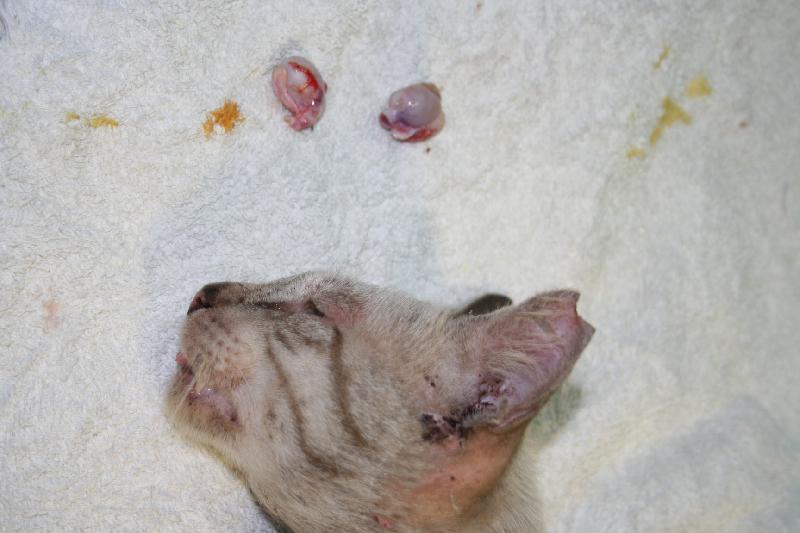 黑輪攤老闆是位很愛貓的好心人.但長期只單純餵養不結紮的結果.就是貓越生越多....幸好碰到好心人宋小姐出手幫忙.號招一群高雄朋友一同幫忙.前前後後已陸續抓了不少的貓咪結紮~為了能在外觀上清楚辨識-->以免再被抓去節育.所以做剪耳記號...男左女右~