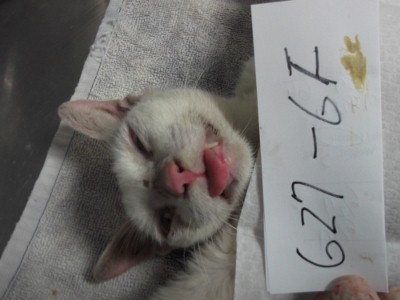 這是娘家五甲這一帶的浪貓, 誘捕到多隻母貓結紮, 這隻腹部有疝氣, 幫她一起做了手術. TNR的貓會在耳朵做剪耳記號, 日後才不會被重覆誘捕. <627-6F>