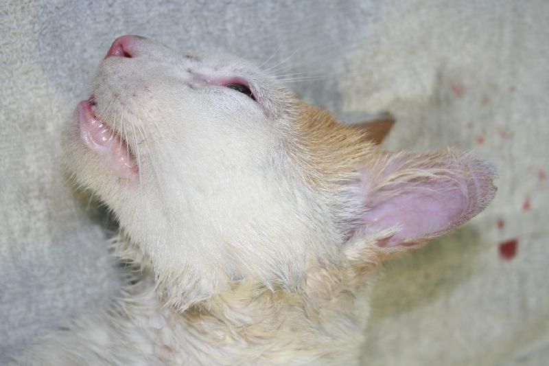 這隻貓咪不知受到什麼驚嚇.慌亂中誤闖到民宅的地下室.愛媽收到求援.在悶不通風的地下室躲到滿身大汗才抓到貓咪...為了能在外觀上清楚辨識-->以免再被抓去節育.所以做剪耳記號...男左女右~