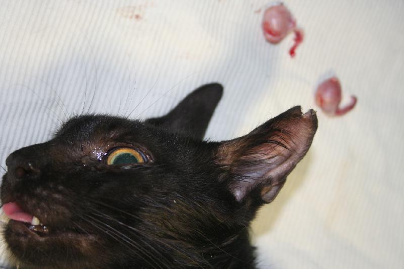 百貨公司附近小吃店林立.暗巷中有很多浪貓辛苦討生活.希望透過結紮.控制貓口數.減少當地居民的反感...麻醉後發現貓咪有疝氣.需動手術.另申請醫助..為了能在外觀上清楚辨識-->以免再被抓去節育.所以做剪耳記號...男左女右~