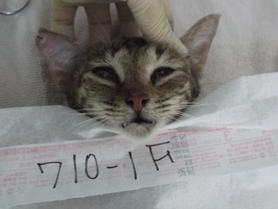 上次經過看到多隻貓咪...陸續來誘捕結紮. TNR的貓咪在耳朵做記號, 日後才不會被重覆手術. <710-1F>