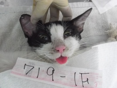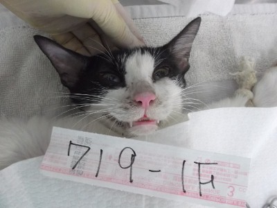 朋友家附近的浪貓, 已來抓過幾次, 趁假日有空又繞過來抓看看. TNR的貓在耳朵會做剪耳記號, 以免日後被重覆手術. <719-1F>