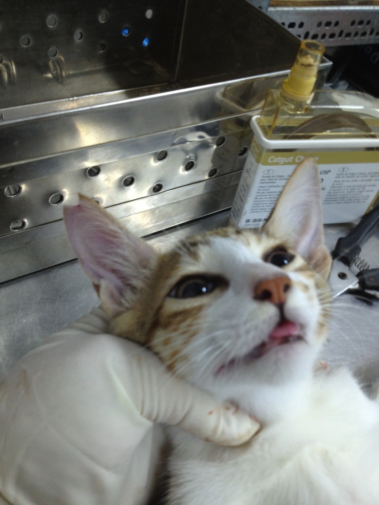 誘捕者暱稱: 迷糊姿 性別: 母 花色: 白底虎斑 誘捕地點: 花蓮市中華路199號(中華市場) 結紮醫院: 美崙動物醫院 結紮費用: 1350 助紮者: 已付款:莫尼x1, Jimmyx1, Mandy Wangx1, kikix1, 狐狸x1 額外醫療費用申請: 特別說明與誘捕心情: 中華市場內有位年紀過70歲賣菜阿嬤,每天都會餵食市場內約30隻的浪貓,年紀大了每日賣菜的收入也有限,加上身體不好又患有類風濕性關節炎全身骨骼都變形,尤其手特別嚴重變形內縮不能伸直,為了不被其他攤販說話和漫罵,阿嬤每天一早3點前就提前到市場餵貓,母貓生了小貓阿嬤會裝籠關起來,遇到每個顧客上門都會問要不要養小貓,收攤了怕小貓沒人照顧阿嬤都會帶回照顧,幾次去關心看到阿嬤那麼辛苦,於是請幾位志工大家一起去誘捕貓咪結紮,減少貓一直繁殖的貓口量來減輕阿嬤的負擔,也讓其他攤販不會因為貓咪一直繁殖,而想辦法趨趕施壓阿嬤請她不要餵...很謝謝協會的支持.更感謝大家的幫忙助紮.謝謝~