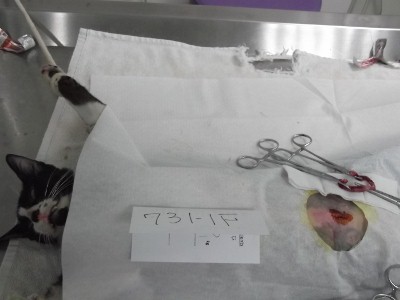 瑞隆路公正路旁的喵喵, 一窩看起來才5個多月大, 趁他們成貓前趕緊誘捕結紮. 這是應該是貓媽媽, 有打噴涕, 感冒的症狀, 在院的一週手術恢復期有餵藥治療. TNR的貓會在耳朵做剪耳記號, 以免日後被重覆誘捕手術. <731-1F>
