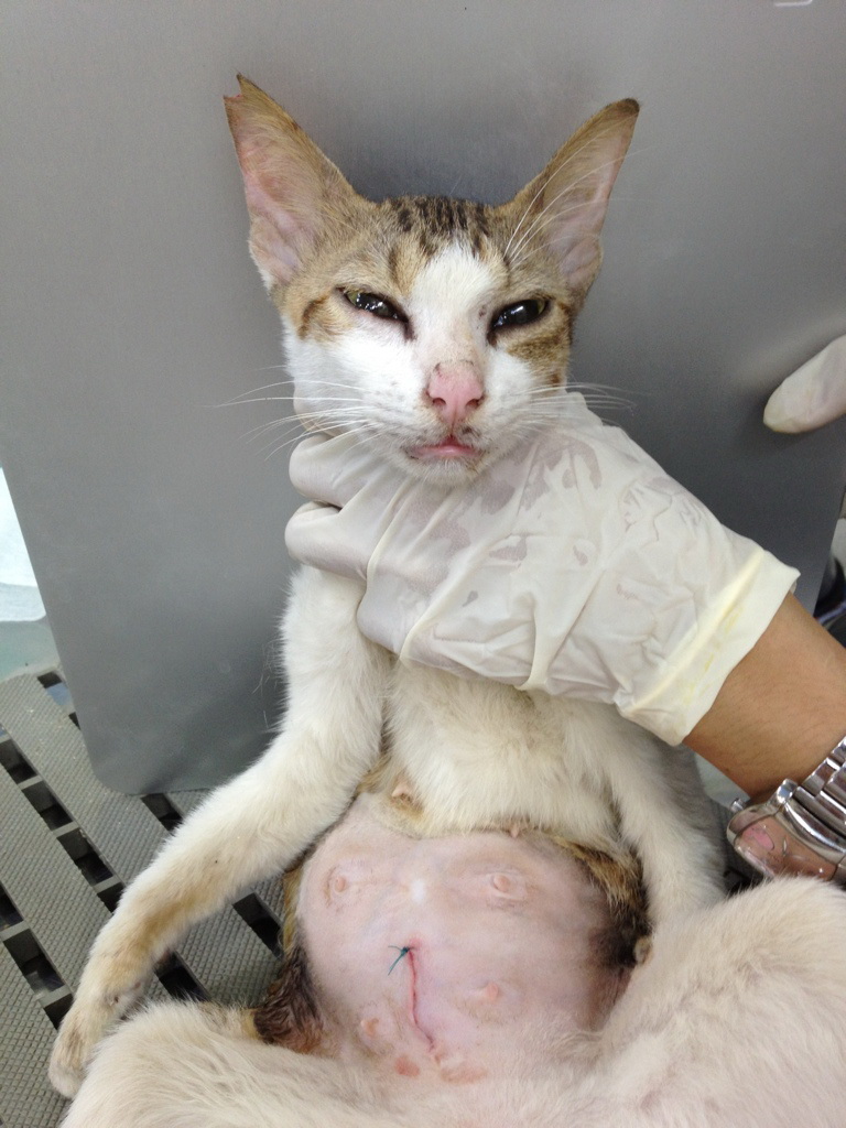 誘捕者暱稱: 迷糊姿 性別: 母 花色: 白底虎斑貓 誘捕地點: 花蓮縣溪口村 結紮醫院: 建國動物診所 結紮費用: 1350 助紮者: 已付款:Sharonx2, Niki Tangx1, siaumax1, 小白x1 額外醫療費用申請: 特別說明與誘捕心情: 這是花蓮縣溪口村一對夫妻通報的.因為往返要近2個小時.志工還是硬著頭皮去了.去了才發現年近80的老夫妻.長期在餵附近的浪貓.每個月光是飼料都要2-3包.本身的收入並不多.而且當地居民也沒有結紮的觀念.再加上都抓不到.抓得到的親人的.老夫妻都已經抓去結紮了.於是幫忙年事已高的老夫妻誘捕浪貓.別讓量再增加了.也希望大家能幫忙出結紮的費用.謝謝~