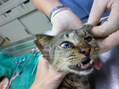 這是在壽山後面山海宮誘捕的貓咪. 有黃疸,脫水,口腔潰爛滿口爛牙已在院治療, 費用移到醫助申請. <828-2>