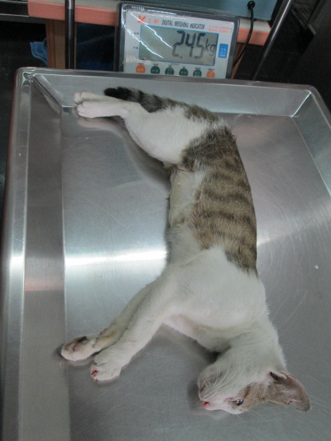 花色: 白底虎斑 誘捕地點: 屏東市廣東路