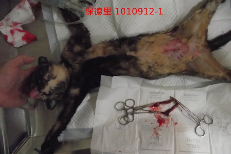 萬華志工簡嘉所誘捕,送院結紮時,發現左後腿有一滿大的創傷,需要縫合,需要額外申請醫助,待復原後,另外申請。