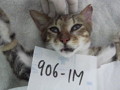 在靠近林園鳳林路上誘捕到的一群貓咪,在餿水桶附近聚集. TNR的貓咪會在耳朵做剪耳記號, 以免日後被重覆誘捕手術. <906-1M>