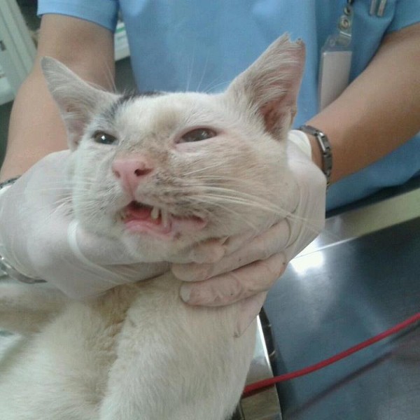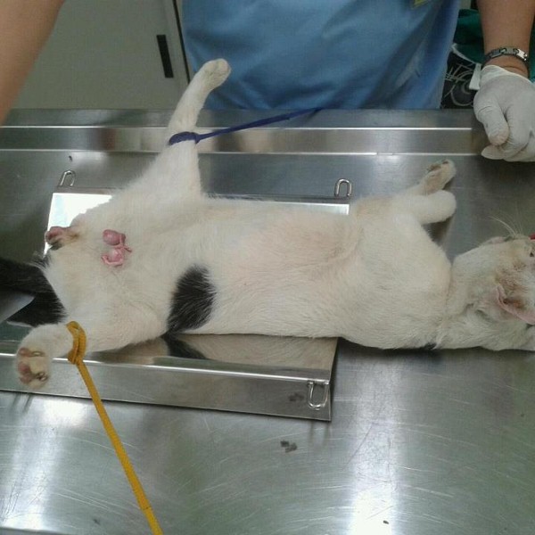 鐵路旁30老屋誘捕到的大頭乖花貓, 已送至醫院進行結紮手術. <913-3M>