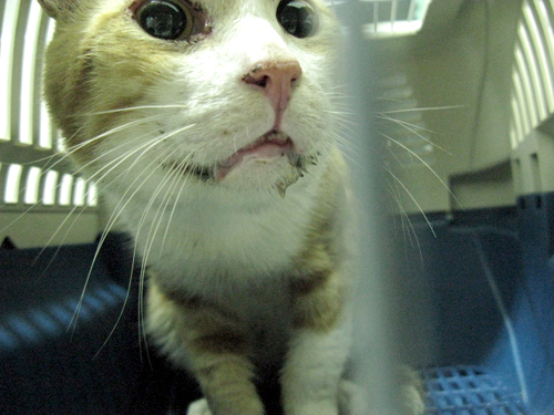 回家後,他沒有一般街貓的緊張,還把籠子裡還有的罐頭都吃掉! 後來還餵了一碗飼料...