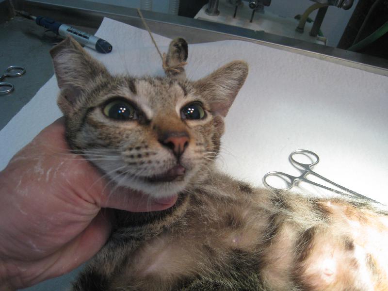志工林玉婷長期餵養的貓,已經生了好幾輪了,今天終於捕獲了,還一次捕獲了兩隻之二.這隻貓同時有臍疝氣,一起修復