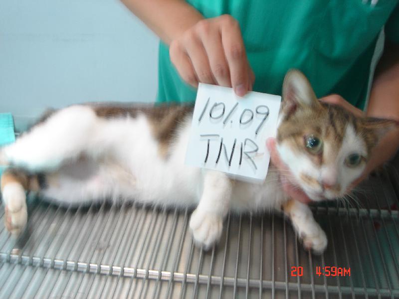 花色: 白底虎斑 誘捕地點: 新北市汐止區林肯大郡
