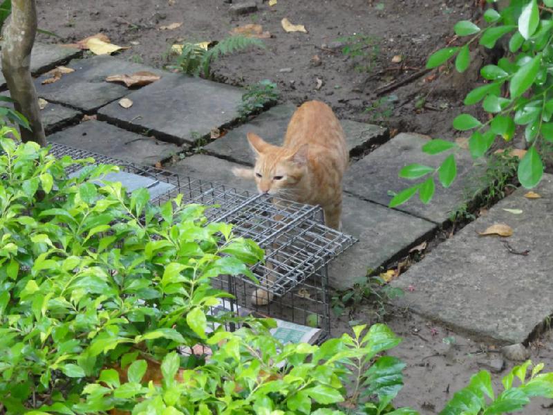 經由協會通報,前去誘捕一隻一眼受傷,一腳掰腳的黑貓,等待目標出現時,先後又有不貓出現,就一並誘捕結紮,等到8點多,目標出現,也順利誘捕,全送醫院結紮及檢查治療。