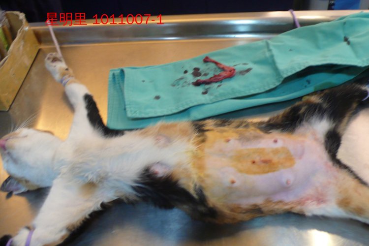 誘捕者暱稱: Akimasa Tu 性別: 母 花色: 三花 164 誘捕地點: 大同區星明里 結紮醫院: 長沁動物醫院 結紮費用: 1500 助紮者: 已付款:Meei Fang Linx5 額外醫療費用申請: 特別說明與誘捕心情: 這隻三花貓,左耳尖缺了一塊,第一次到此點勘查時,就有看到他,原以為是TNR的貓,不抓他,但第二次前去T貓時,詢問當地餵養的人有多少貓末紮?聊著聊著對方說有一隻耳朵缺一角的三色貓,前陣子又生小貓,拿了之前拍的照片給對方指認,確定是這三花貓,耳朵是受傷,而不是TNR剪耳的標示,隔幾天又去這點時,在一小防火巷內這三花貓又出現,而且並不怕人,開罐頭給他,就在身旁吃了起來,順利抓到他送醫院,確認是末紮的母貓。