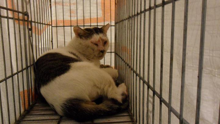原本在誘補車庫裡的母喵,但她實在好膽小,