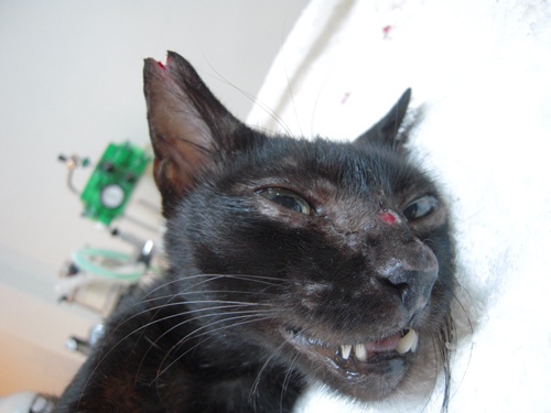 貓小姐鼻頭有點受傷,醫生也給予施藥治療