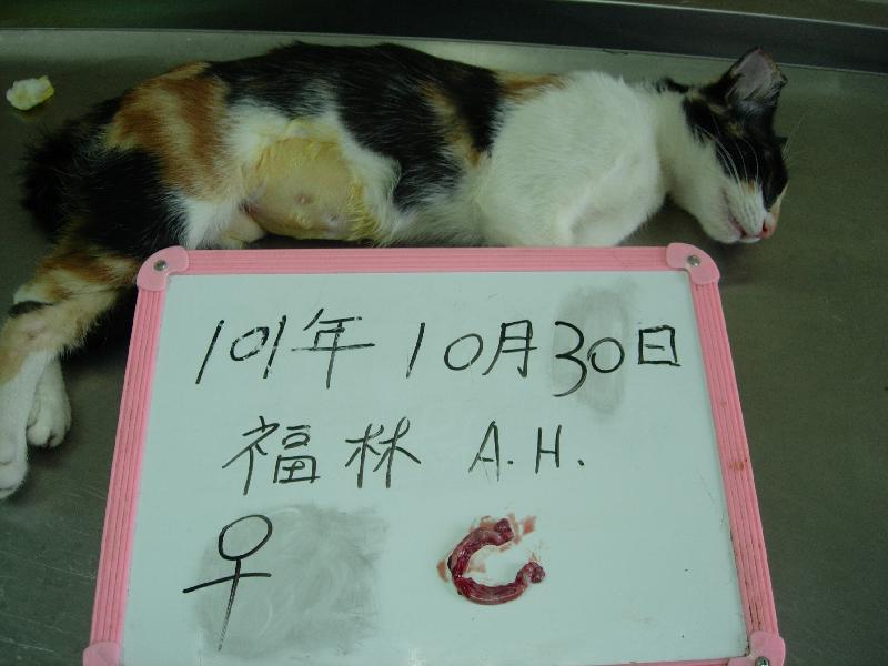 結紮醫院: 福林動物醫院 結紮費用: 1500
