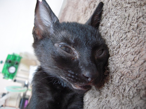 是跟著貓媽媽ㄧ起擠進去誘補籠的.