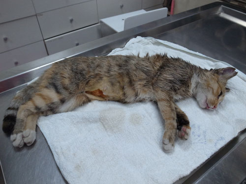 和平二路巷子靠近國小有滿多隻流浪貓,周遭一圈我陸續抓來結紮,這隻母貓很信任人,不到1分鐘就順利抓到。