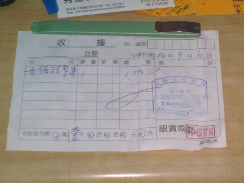 結紮醫院: 國際犬貓專科醫院 結紮費用: 1000