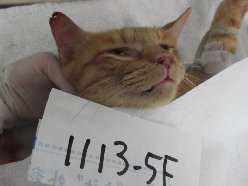 這是港和國小附近的浪貓群, 已經紮了10餘隻, 這隻貓咪送院時在車上有聽到她打噴涕, 醫生先治療幾天打噴涕改善, 食慾正常才結紮. <1113-5F>