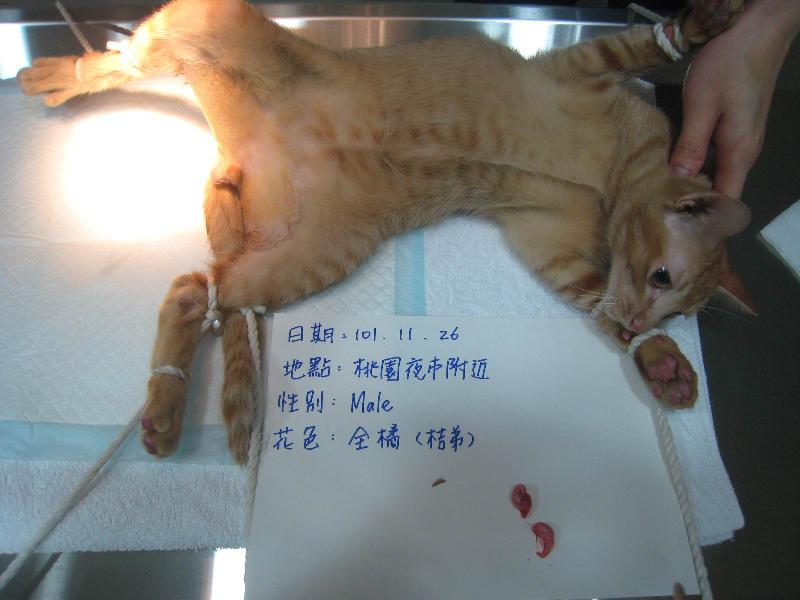 誘捕者暱稱: 埋愛葬心 性別: 公 花色: 全橘 誘捕地點: 桃園夜市附近 結紮醫院: 仰望動物醫院(眼專科) 結紮費用: 900 助紮者: 已付款:Riax1, 柯小芳x1, Skyx3, hclx1 額外醫療費用申請: 700 特別說明與誘捕心情: 這邊的浪浪很多