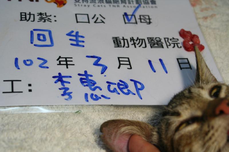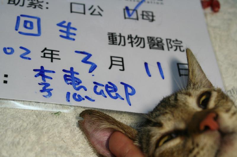 結紮醫院: 回生動物醫院 結紮費用: 1200
