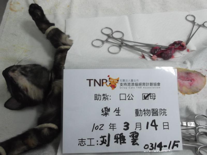 結紮醫院: 樂生動物醫院 結紮費用: 1200